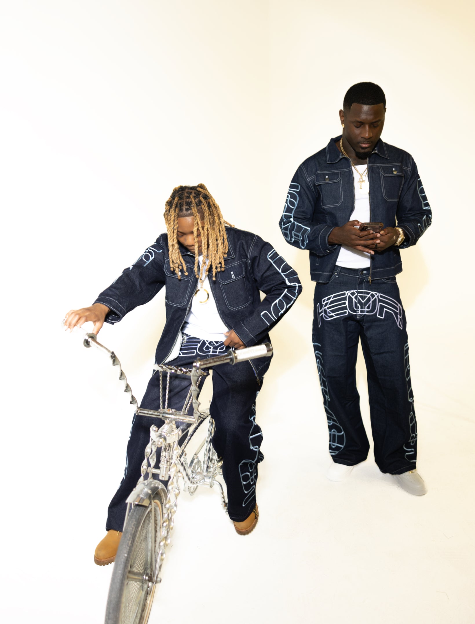 Designed to complete the look, these premium dark denim pants redefine modern street luxury. The structured yet comfortable fit pairs effortless movement with elevated style. Keyori branding accents the sides, creating a bold visual link to the matching jacket while standing out on its own. Versatile, confident, and crafted for those who demand distinction in every detail.
